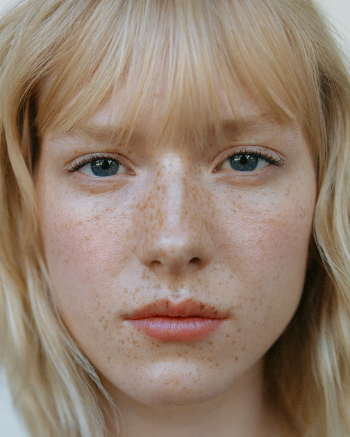 Mit der Wärme der Fingerkuppen sparsam aufnehmen, auf die Highpoints (Wangenknochen, Brauenbogen, Nasenrücken, Amorbogen) auftupfen & verblenden.